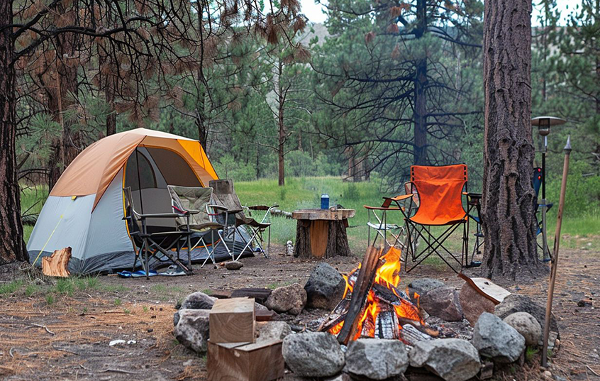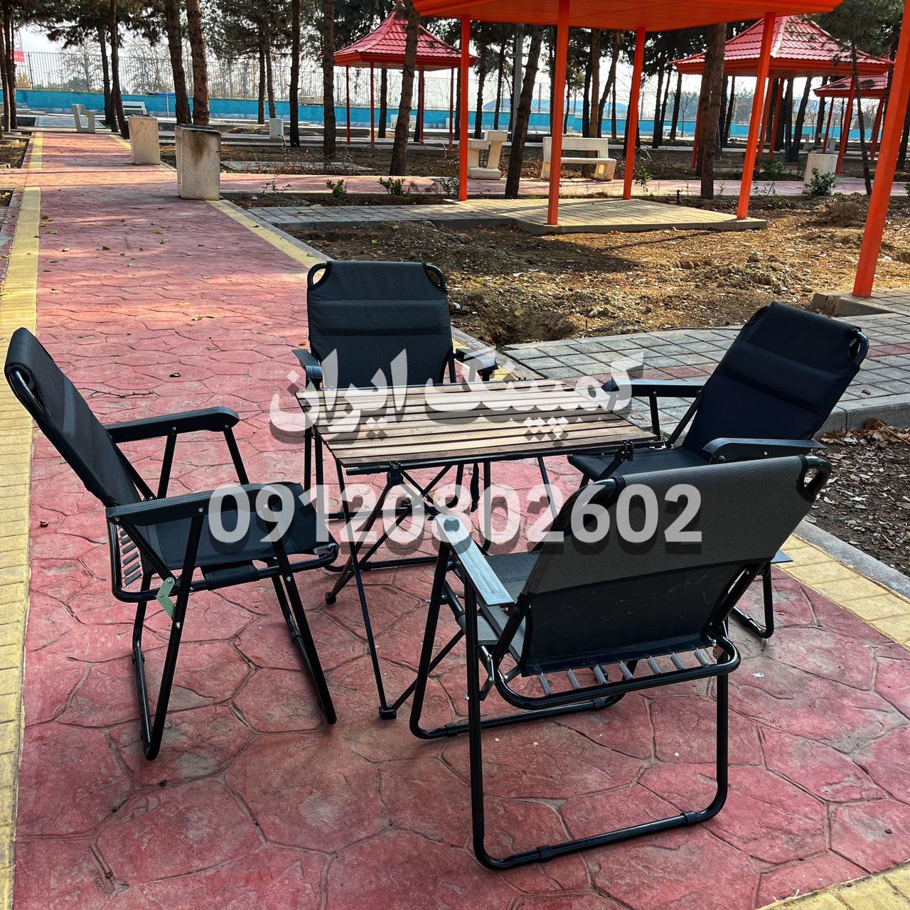 ست ۴ نفره صندلی تاشو مسافرتی دسته مبلی فومدار با میز چوبی و ۷ فنر