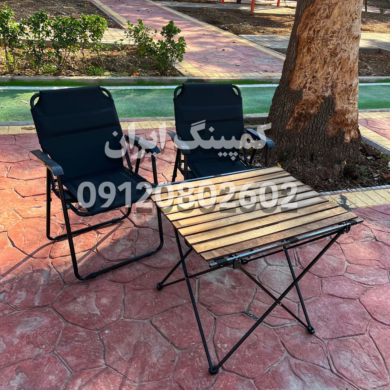 ست دو نفره صندلی تاشو ۹ فنره پلاس با میز چوبی کاوردار